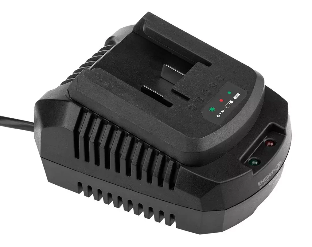 Ładowarka posiada diody informujące o postępie ładowania, napięcie ładowania 26 V, zasilanie 230 V~50 Hz oraz wytrzymały, elastyczny przewód, gwarantujący komfort użytkowania. Idealna dla profesjonalistów i majsterkowiczów korzystających z systemu Energy+.