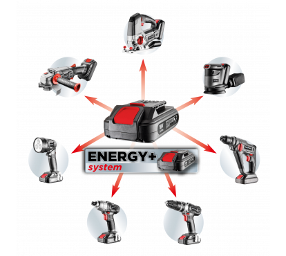 Akumulator GRAPHITE Energy+ 18V, Li-Ion o pojemności 2.0Ah. Z możliwością doładowywania bez ryzyka utraty pojemności. Wyposażony we wskaźnik naładowania oraz elektroniczny system kontroli temperatury i przepływu prądu podczas ładowania i rozładowywania.