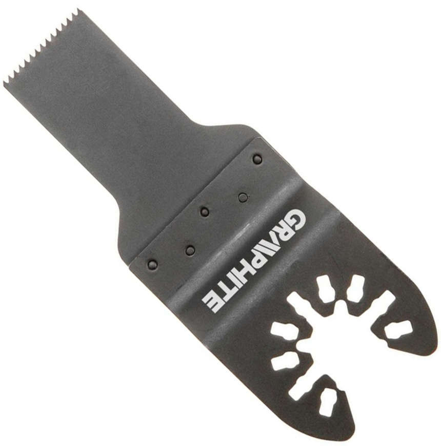 Brzeszczot płaski GRAPHITE wykonany z hartowanej stali węglowej. Pozwala na precyzyjne cięcie elementów drewnianych w trudno dostępnych miejscach przy pomocy multinarzędzia GRAPHITE