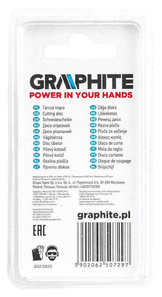 Tarcza korundowa zbrojona, 55H072, GRAPHITE, komplet 10 sztuk. Zestaw tarcz wzmocnionych włóknem szklanym i żywicą. Są elastyczne i mają dużą wydajność cięcia oraz długą żywotność, uzyskaną dzięki zastosowaniu żywicy, która również znacznie zmniejsza ryzyko złamania. Akcesoria do miniszlifierki, które nadają się do przycinania i gratowania, metali szlachetnych i nieszlachetnych oraz ich stopów, tworzyw sztucznych, włókna szklanego oraz drewna. Działają bez nagrzewania materiału i przy minimalnym powstawaniu pyłu.