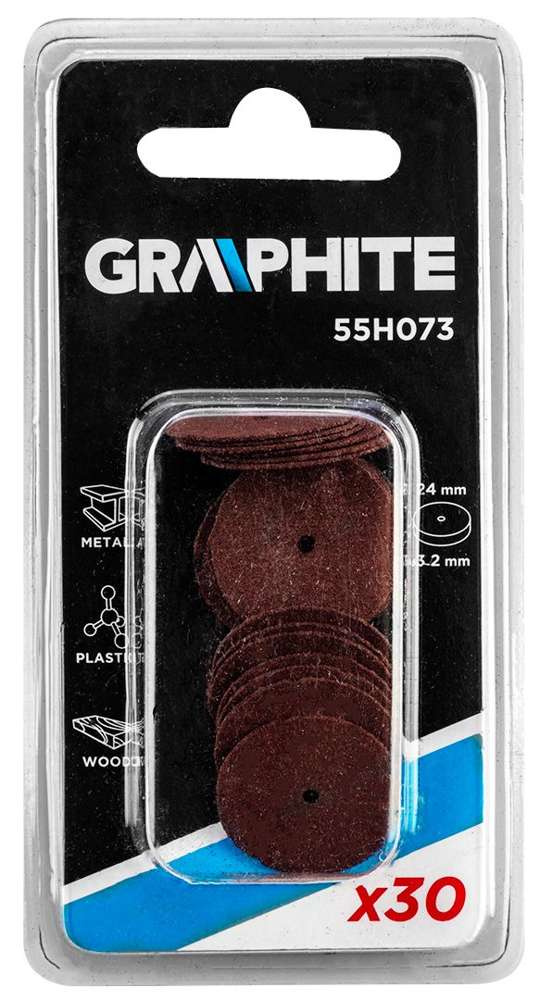 Tarcza korundowa, 55H073, GRAPHITE, komplet 30 sztuk. Niezbędne akcesorium do cięcia różnego rodzaju materiałów. Tarcza korundowa przetnie najtwardszy materiał budowlany zaczynając od metalu kończąc na stali konstrukcyjnej i odlewach. Wysokiej jakości wykonanie tarczy gwarantuje długą żywotność produktu. Akcesoriym do miniszlifierki, które nadaje się do przycinania i gratowania, szlifowania metali szlachetnych i nieszlachetnych oraz ich stopów, płytek, kamienia, ceramiki, szkła, tworzyw sztucznych, włókna szklanego oraz drewna.