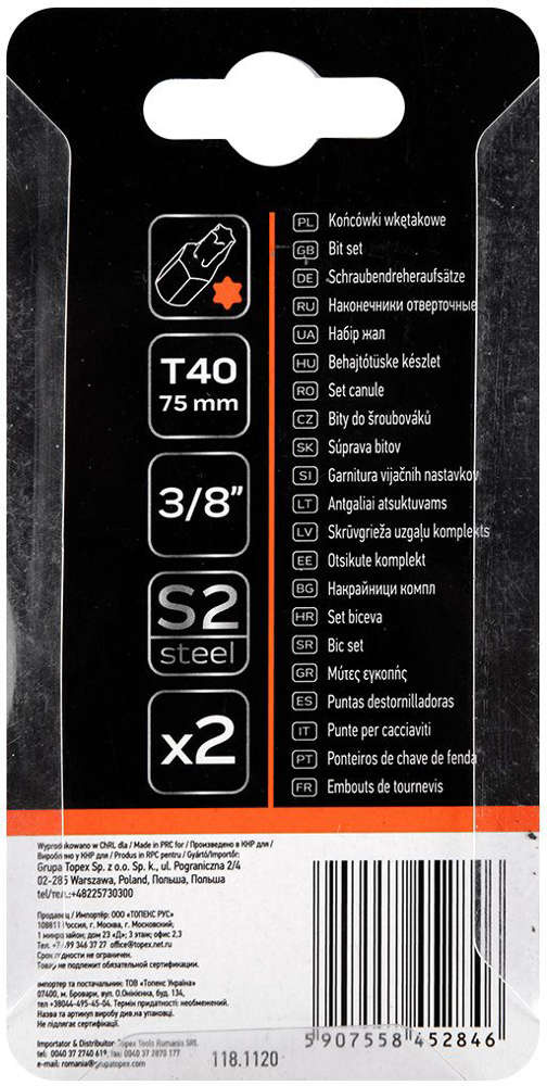 Końcówka TORX T40 x 75 mm, 10-942, NEO, klucz trzpieniowy do odkręcania śrub torx. Są niezbędnym elementem wyposażenia każdego profesjonalnego warsztatu i serwisu samochodowego.