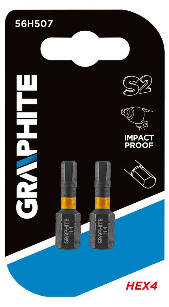 Końcówki wkrętakowe udarowe HEX4 x 25 mm Graphite 2 sztuki 56H507