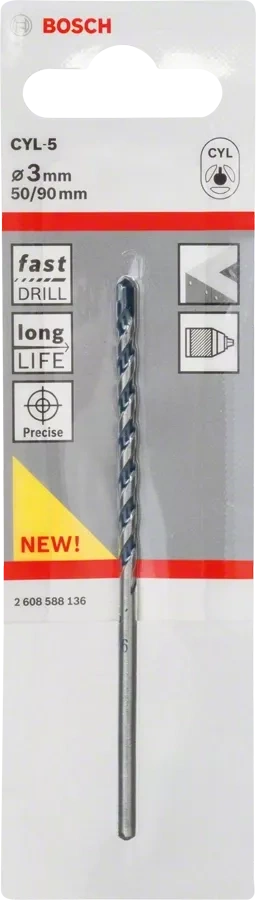 Wiertło CYL-5 cechuje się bardzo dużą trwałością podczas wiercenia w betonie i kamieniu. Połączenie kombinacji węglików opracowanej przez firmę Bosch i ostrzonych ściernicą diament. krawędzi tnących zapewnia bardzo wysoką odporność na zużycie. Tarcie pomiędzy rowkiem a nawiercanym materiałem jest znacząco zmniejszone dzięki projektowi dwurowkowej spirali z krótkim, zmiennym nachyleniem, co zapewnia doskonałe usuwanie pyłu i zmniejszenie zużycia wiertła. System mocowania trzpienia Bosch Power Grip umożliwia 100% przeniesienie mocy z urządzenia na wiertło. To pozwala na bezpośrednie przekazanie mocy do wiercenia bez straty energii, a przez to zmniejszenie zużycia. Produkt przeznaczony jest do wykonywania otworów mocujących w betonie oraz kamieniu naturalnym i sztucznym. Jest kompatybilny z systemami trzpieni cylindrycznych we wszystkich wiertarkach udarowych, przewodowych lub bezprzewodowych.