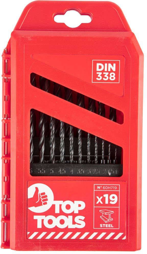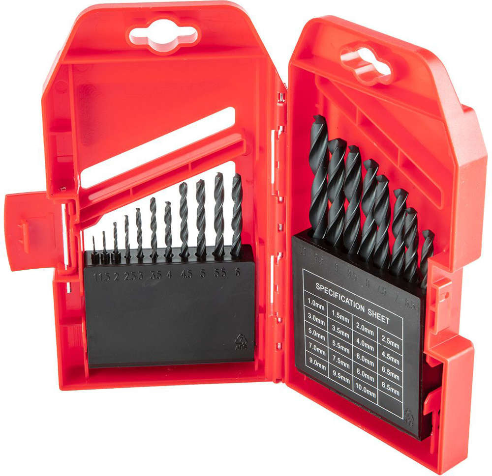 Wiertła do metalu HSS, 1.0-10.0 mm, zestaw 19 szt., 1.0, 1.5, 2.0, 2.5, 3.0, 3.5, 4.0, 4.5, 5.0, 5.5, 6.0, 6.5, 7.0, 7.5, 8.0, 8.5, 9.0, 9.5, 10.0 mm