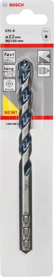 Wiertło CYL-5 cechuje się bardzo dużą trwałością podczas wiercenia w betonie i kamieniu. Połączenie kombinacji węglików opracowanej przez firmę Bosch i ostrzonych ściernicą diament. krawędzi tnących zapewnia bardzo wysoką odporność na zużycie. Tarcie pomiędzy rowkiem a nawiercanym materiałem jest znacząco zmniejszone dzięki projektowi dwurowkowej spirali z krótkim, zmiennym nachyleniem, co zapewnia doskonałe usuwanie pyłu i zmniejszenie zużycia wiertła. System mocowania trzpienia Bosch Power Grip umożliwia 100% przeniesienie mocy z urządzenia na wiertło. To pozwala na bezpośrednie przekazanie mocy do wiercenia bez straty energii, a przez to zmniejszenie zużycia. Produkt przeznaczony jest do wykonywania otworów mocujących w betonie oraz kamieniu naturalnym i sztucznym. Jest kompatybilny z systemami trzpieni cylindrycznych we wszystkich wiertarkach udarowych, przewodowych lub bezprzewodowych.