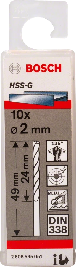 - Bosch wiertła do metalu HSS-G 2MM Standard 2 x 24 x 49 mm 10szt.