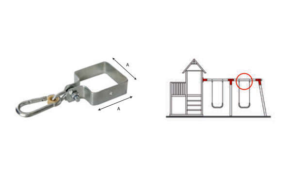 Mocowanie do huśtawki z obejmą kwadratową 90 mm z karabińczykiem