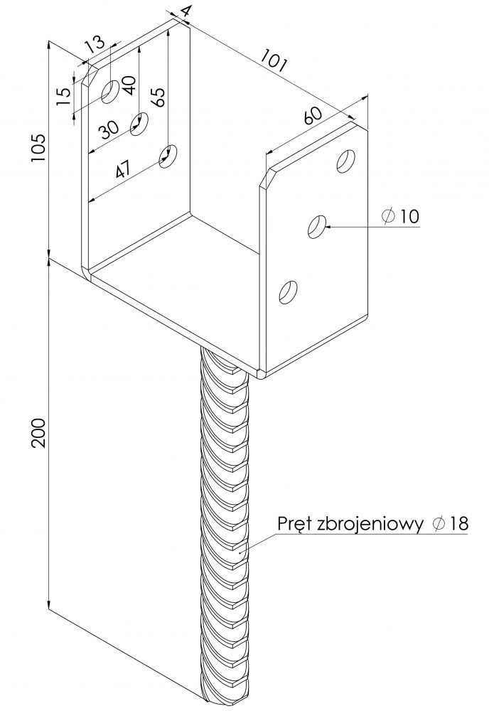 - Materiał: Blacha stalowa 4 mm, pręt zbrojeniowy fi 18 mm