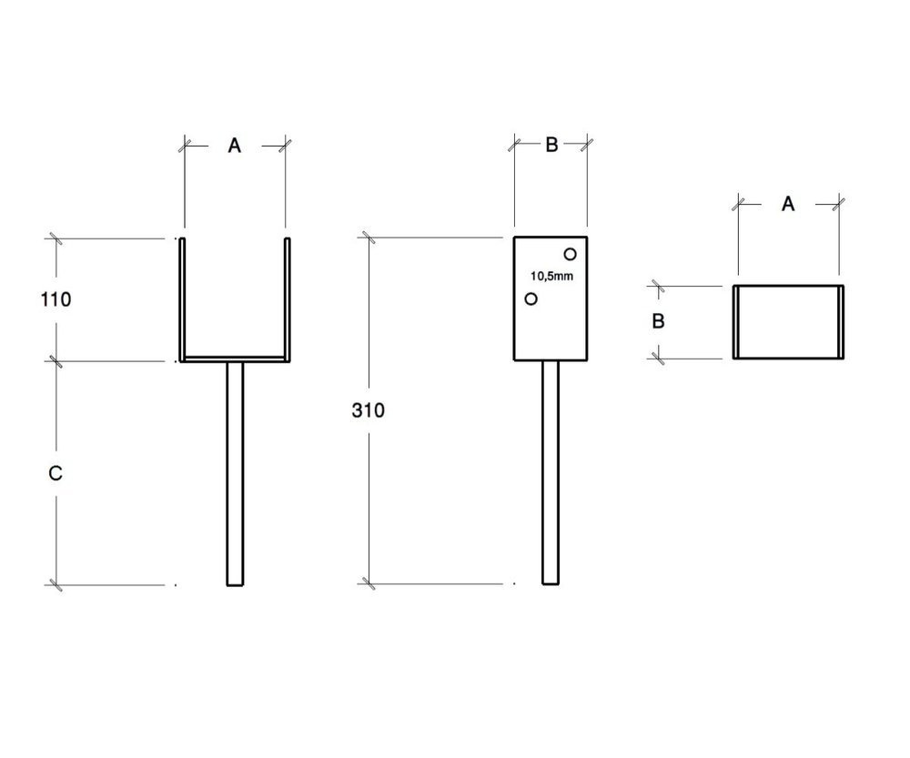 Podstawa słupa do wmurowania KSU kotwa U o wymiarach 100 x 65 x 200 x 4 mm