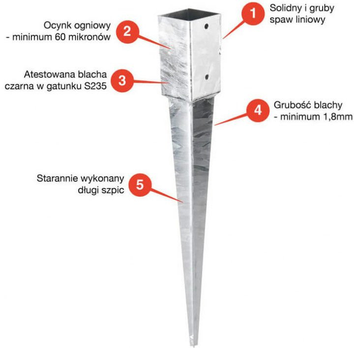 - ŁĄCZNIK PODSTAWA SŁUPA WBIJANA KSW 45 45x650mm