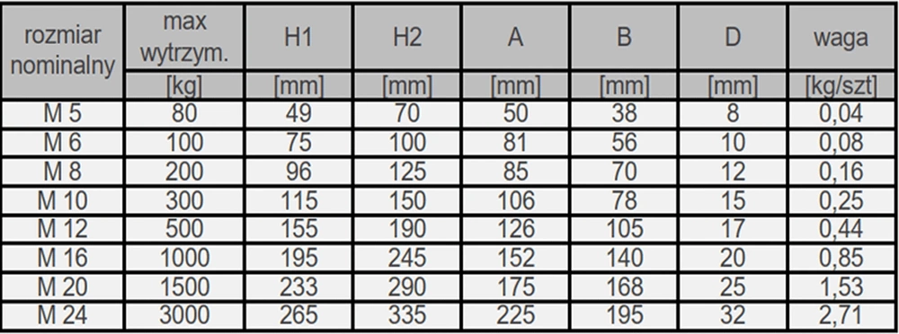 - Maksymalna wytrzymałość wynosząca 1000kg, idealna do zadań wymagających napięcia lin stalowych o dużej mocy.