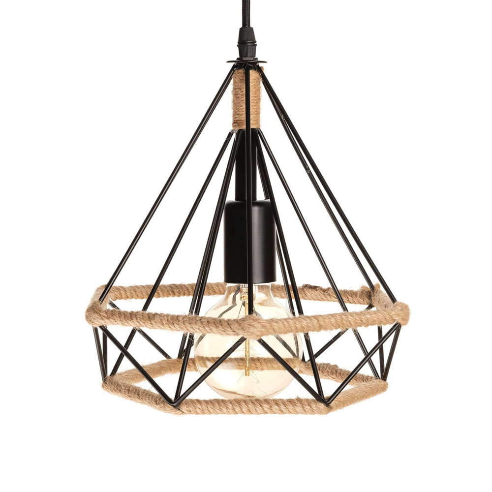 ORYGINALNY DESIGN - Styl boho stał się modnym trendem wnętrzarskim. W odpowiedzi przedstawiamy lampę w jutowym oplocie. Naturalny sznurek w ażurowej formie metalowego klosza sprawia że lampa pasuje praktycznie w każdym wnętrzu.