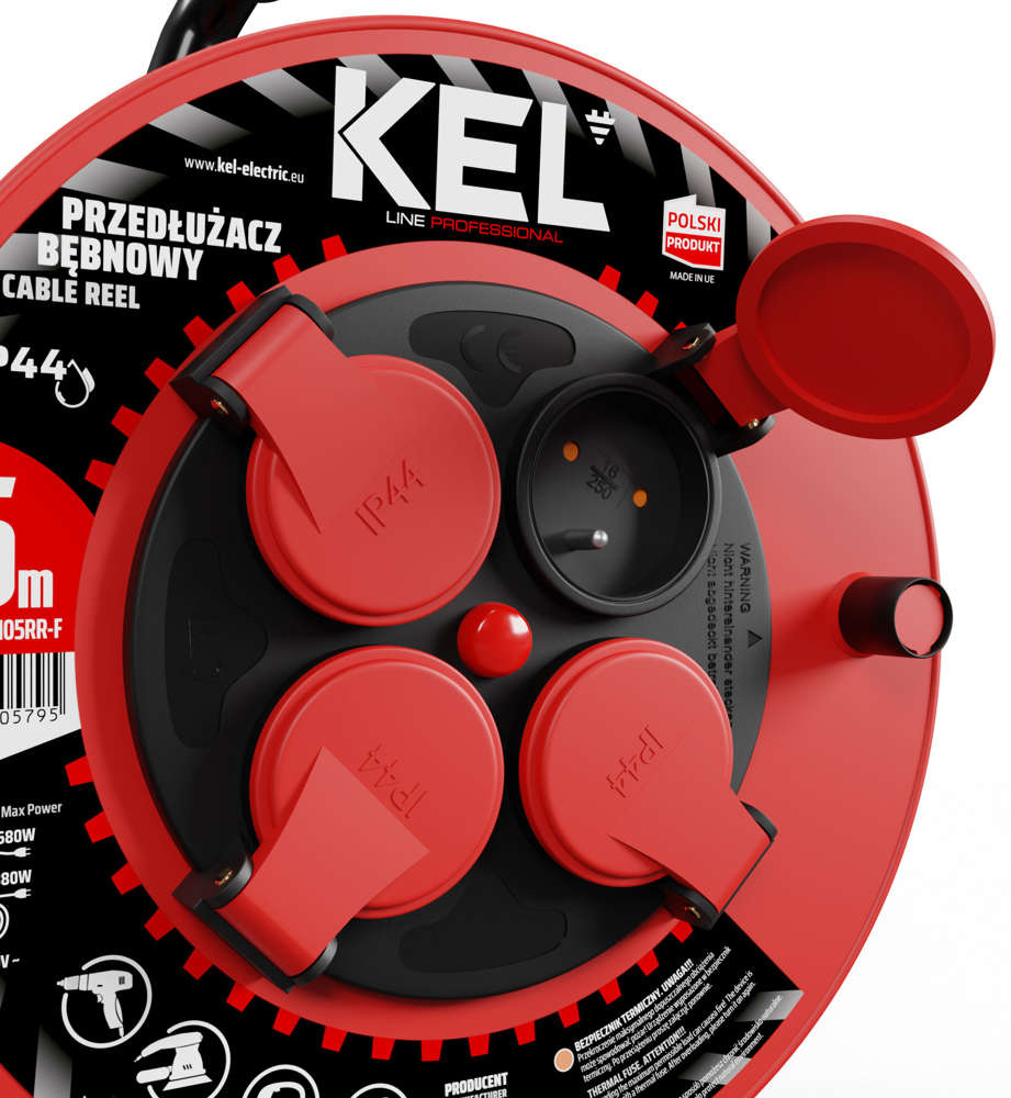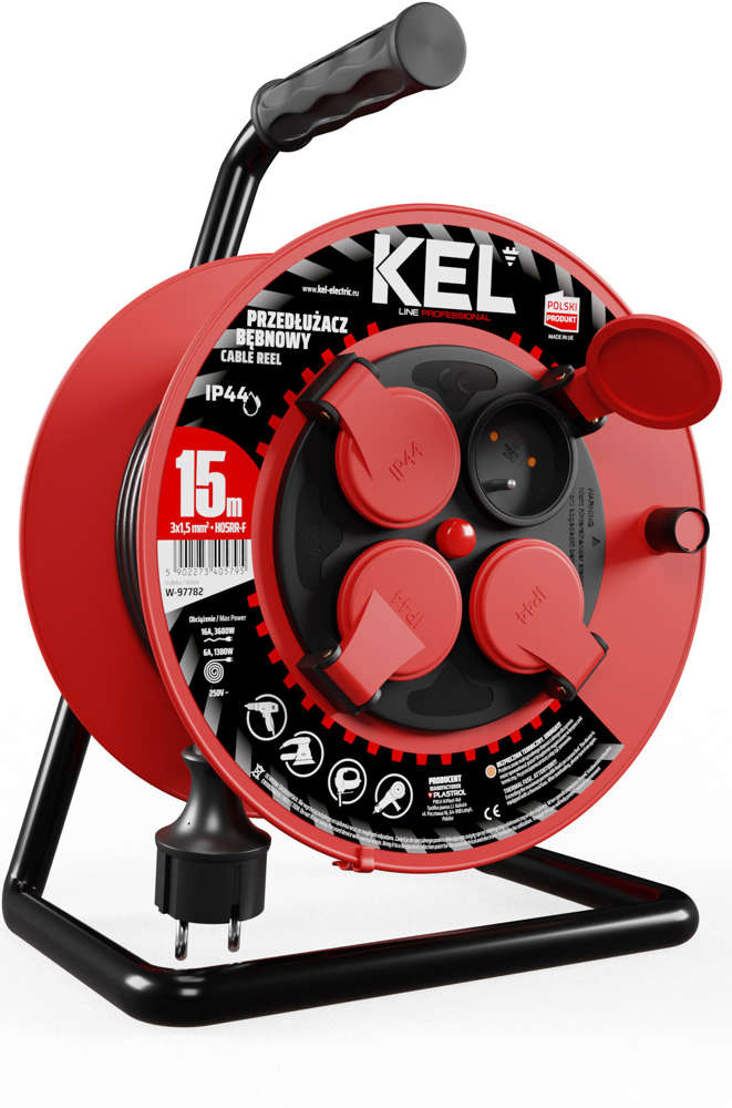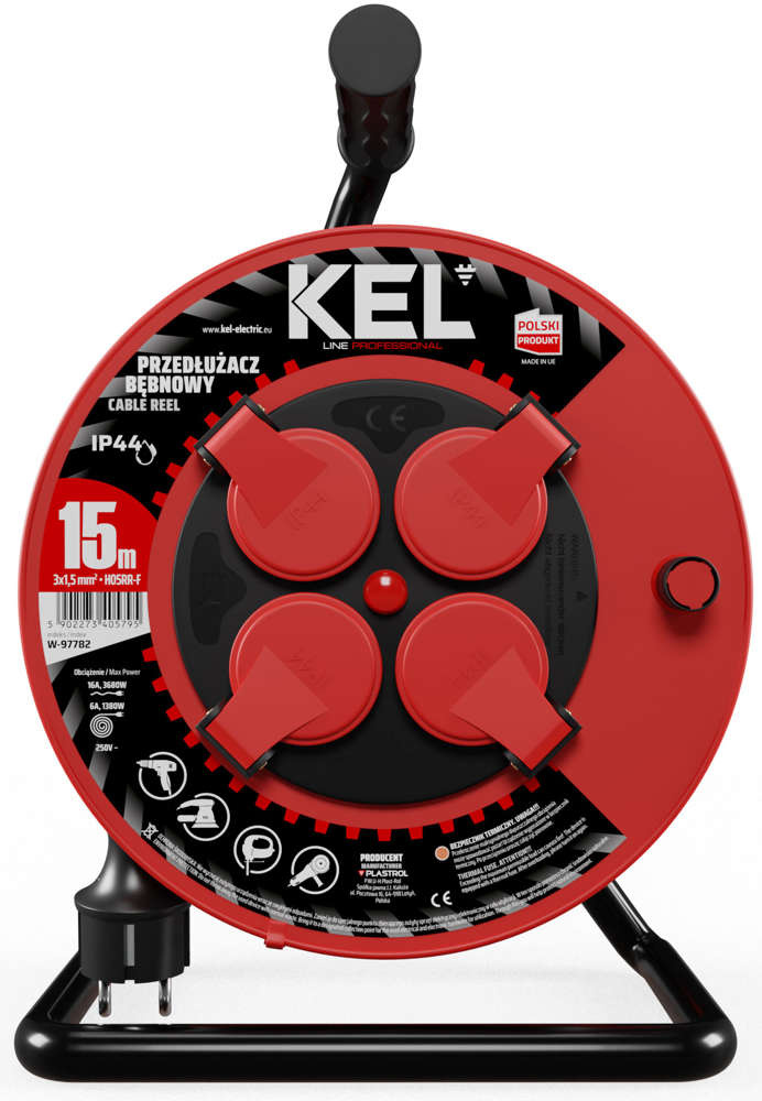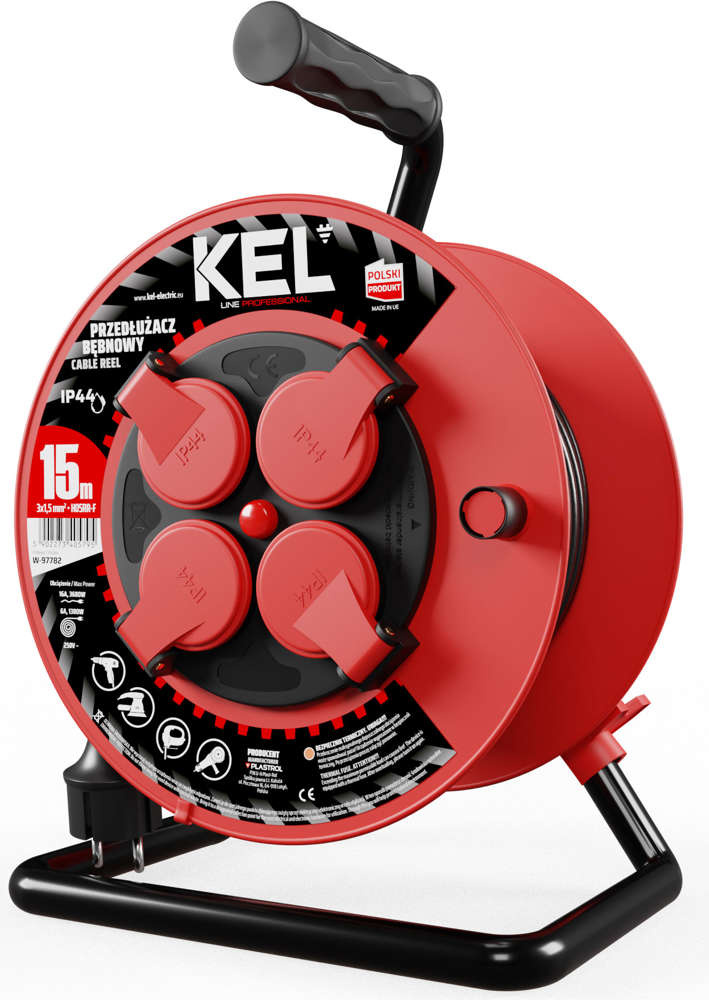 Przedłużacz elektryczny bębnowy warsztatowy o długości 15 m KEL PB-PRO/S/15M/3X1,5/H05RR-F