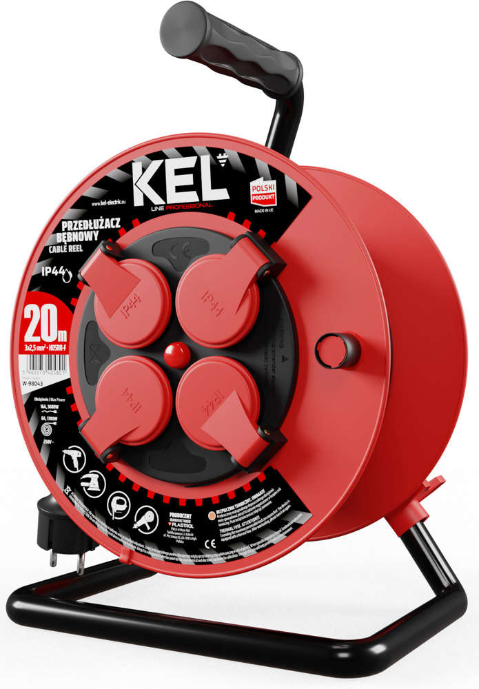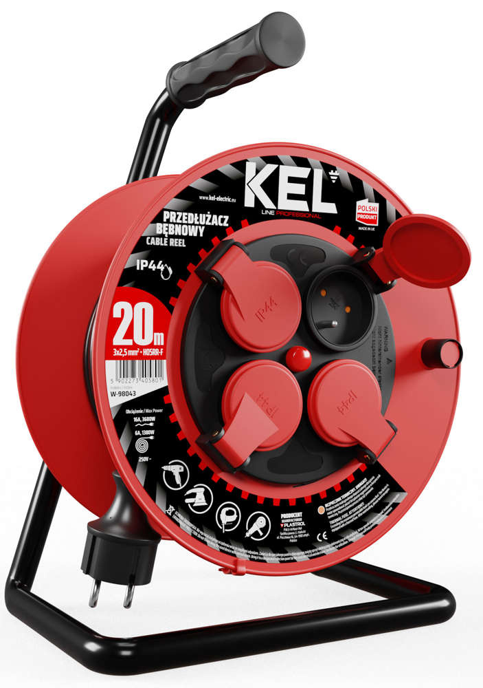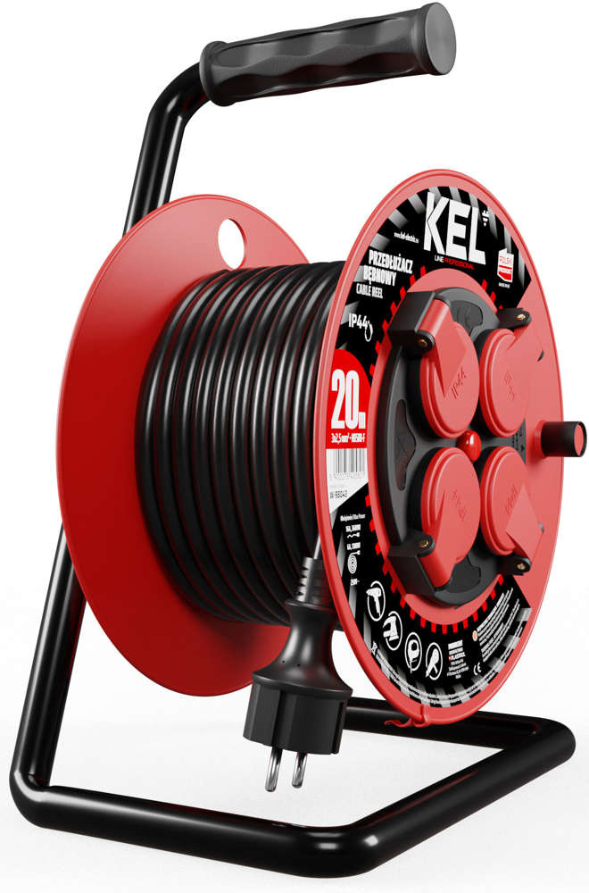 Przedłużacz elektryczny bębnowy warsztatowy o długości 20 m KEL PB-PRO/S/20M/3X2,5/H05RR-F