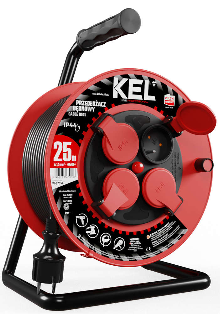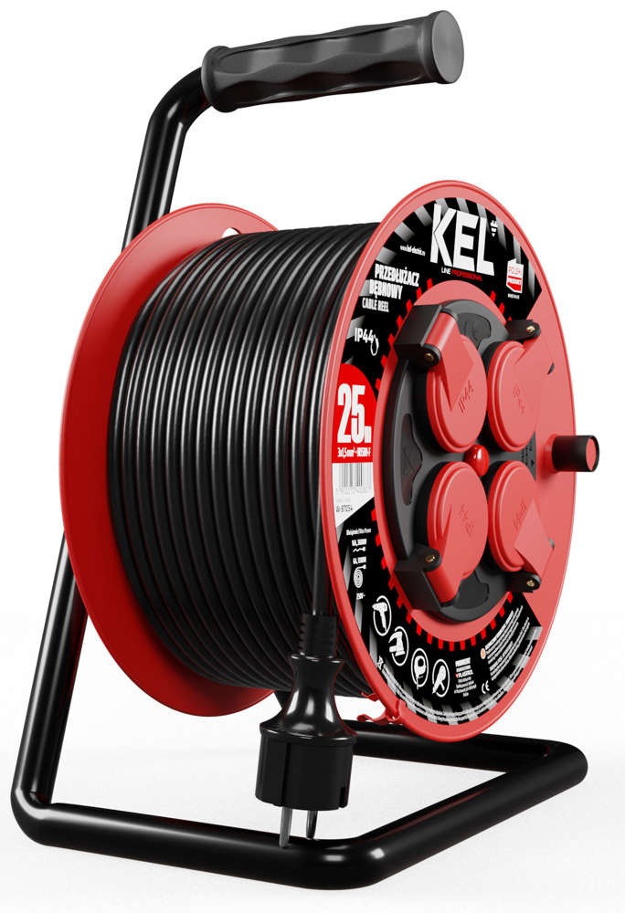 Przedłużacz elektryczny bębnowy warsztatowy o długości 25 m KEL PB-PRO/S/25M/3X1,5/H05RR-F