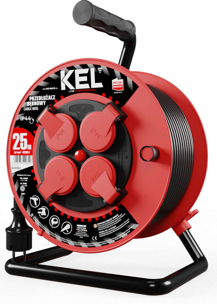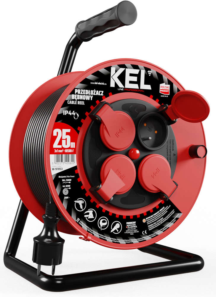 Przedłużacz elektryczny bębnowy warsztatowy o długości 25 m KEL PB-PRO/S/25M/3X1/H05RR-F