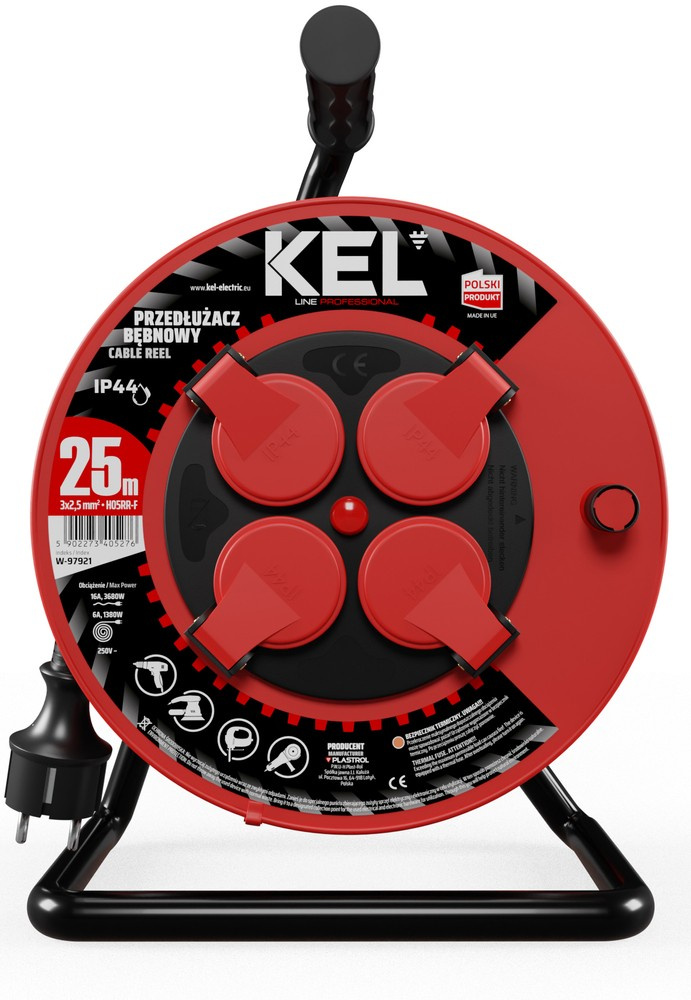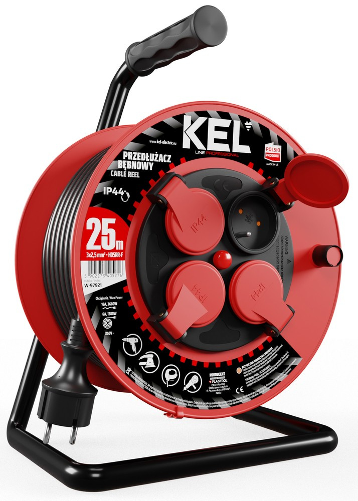 Przedłużacz elektryczny bębnowy warsztatowy o długości 25 m KEL PB-PRO/S/25M/3X2,5/H05RR-F