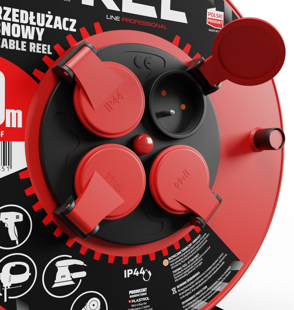 Przedłużacz bębnowy H05RR-F 40 m 3*1,5 przeznaczony do stosowania głównie w gospodarstwach domowych. Renomowana Polska firma Plastrol specjalizuje się w produkcji wytrzymałych przedłużaczy wysokiej jakości. Do wykonania przedłużacza zastosowano przewód H05VV-F. Przedłużacz ten posiada: gumową uszczelkę gniazda, zalewaną wtyczkę IP44, wyłącznik termiczny, obracający się uchwyt, stalowy stelaż oraz solidny ergonomiczny uchwyt. Przedłużacz z powodzeniem znajdzie zastosowanie w gospodarstwie domowym. Z łatwością dotrze do każdego zakątka domu lub podwórka dzięki optymalnej długości wynoszącej 40 m.