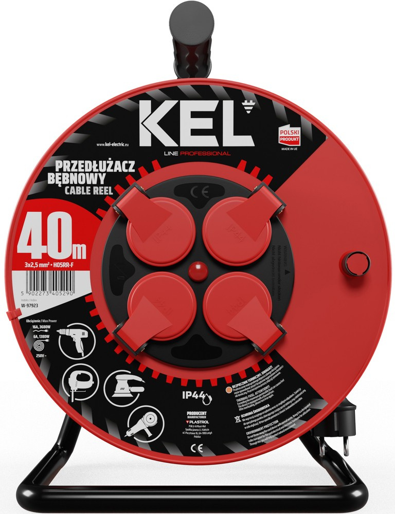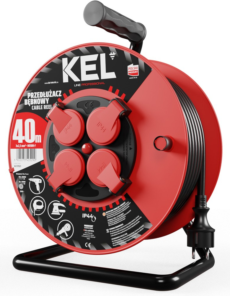 Przedłużacz elektryczny bębnowy warsztatowy o długości 40 m KEL PB-PRO/D/40M/3X2,5/H05RR-F