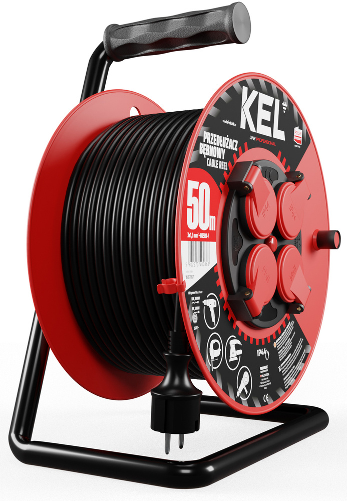 Przedłużacz elektryczny bębnowy warsztatowy o długości 50 m KEL PB-PRO/D/50M/3X1,5/H05RR-F