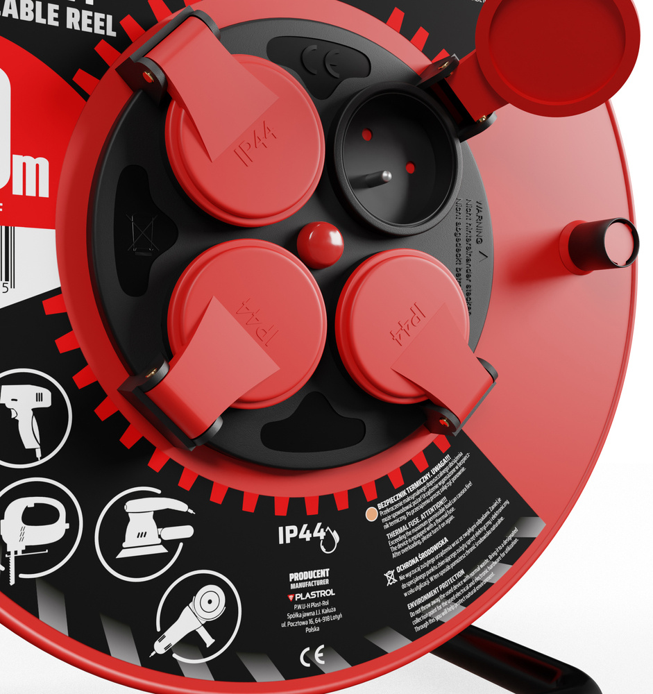 Przedłużacz bębnowy H05RR-F 50 m 3*1,5 przeznaczony do stosowania głównie w gospodarstwach domowych. Renomowana Polska firma Plastrol specjalizuje się w produkcji wytrzymałych przedłużaczy wysokiej jakości. Do wykonania przedłużacza zastosowano przewód H05VV-F. Przedłużacz ten posiada: gumową uszczelkę gniazda, zalewaną wtyczkę IP44, wyłącznik termiczny, obracający się uchwyt, stalowy stelaż oraz solidny ergonomiczny uchwyt. Przedłużacz z powodzeniem znajdzie zastosowanie w gospodarstwie domowym. Z łatwością dotrze do każdego zakątka domu lub podwórka dzięki optymalnej długości wynoszącej 50 m.