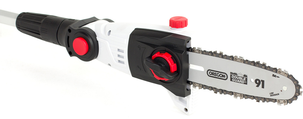 Pilarka elektryczna na wysięgniku z regulacją pochylenia firmy NAC. Możliwość szybkiej i łatwej regulacji długości wysięgnika w zakresie od 190 cm do 270 cm oraz możliwość regulacji kąta nachylenia głowicy tnącej bardzo ułatwia przycinanie drzewek. Długość prowadnicy to 24,2 cm Piła wykonana jest z wysokiej jakości materiałów, co zapewnia dobrą stabilność i co za tym idzie, mniejsze zmęczenie podczas pracy. Dużą zaletą piły jest jej waga tylko 3,3 kg. Prędkość łańcucha 5.5 m/s.