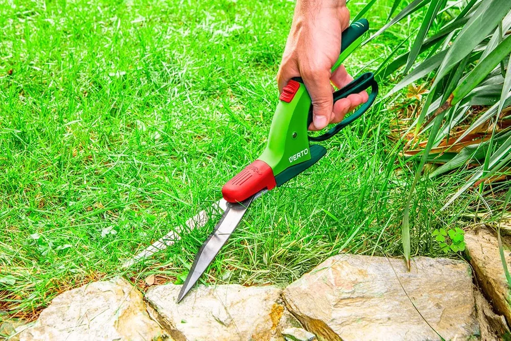 Profesjonalne nożyce firmy Verto o całkowitej długości 340 mm posiadają ostrze długości 130 mm. Narzędzie to znajduje swoje zastosowanie podczas pielęgnacji oraz przycinania trawnika w trudno dostępnych miejscach oraz na jego obrzeżach. Dodatkowo narzędzie idealnie sprawdzi się przy podcinaniu łodyg lub gałęzi o małej średnicy. Wielopozycyjne nożyce posiadają możliwość obrotu w zakresie 360°. Taka konstrukcja ułatwia pracę oraz pozwala na uzyskanie perfekcyjnych rezultatów w krótkim czasie. Ostrze pokryte jest warstwą PTFE, zapobiegającą ich korozji oraz umożliwiającą cięcie mokrych łodyg, bez obawy o uszkodzenie narzędzia.