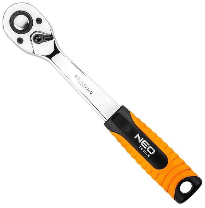 - Grzechotka 1/2" NEO o długości 195 mm, z korpusem ze stali chromowo-wanadowej, wykonana zgodnie z normą DIN 3122.