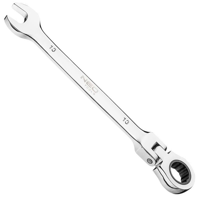 Klucz płasko-oczkowy z grzechotką i przegubem ze stali CrV o rozmiarze 13 x 185 mm Neo 09-055