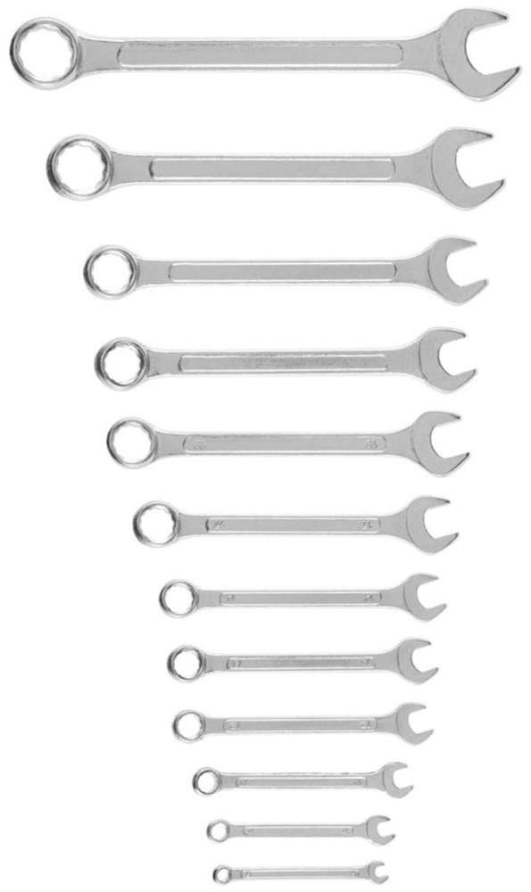 - Zestaw 12 sztuk kluczy płasko-oczkowych. Oczko pozwala na precyzyjniejsze uchwycenie śruby.