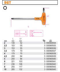Klucz trzpieniowy kątowy sześciokątny z rękojeścią 2mm Beta 96T/2