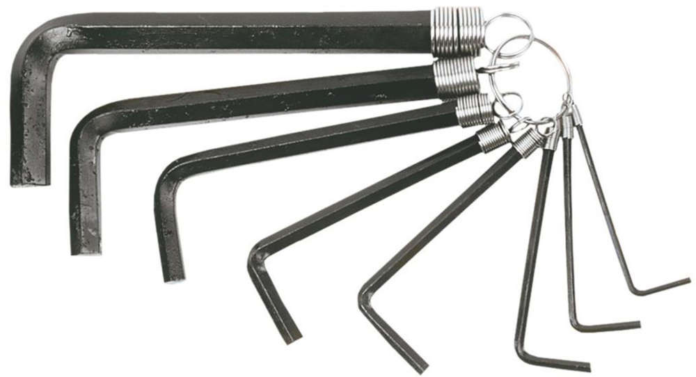 Klucze sześciokątne 2-10 mm, zestaw 8 szt., rozmiary: 2, 2.5, 3, 4, 5, 6, 8, 10 mm. Innowacyjnym rozwiązaniem jest umieszczenie ich na metalowej zawieszce dzięki czemu zawsze pozostają w komplecie, a w razie potrzeby istnieje możliwość odłączenia pożądanego klucza. Marka Top Tools skierowana jest do majsterkowiczów.