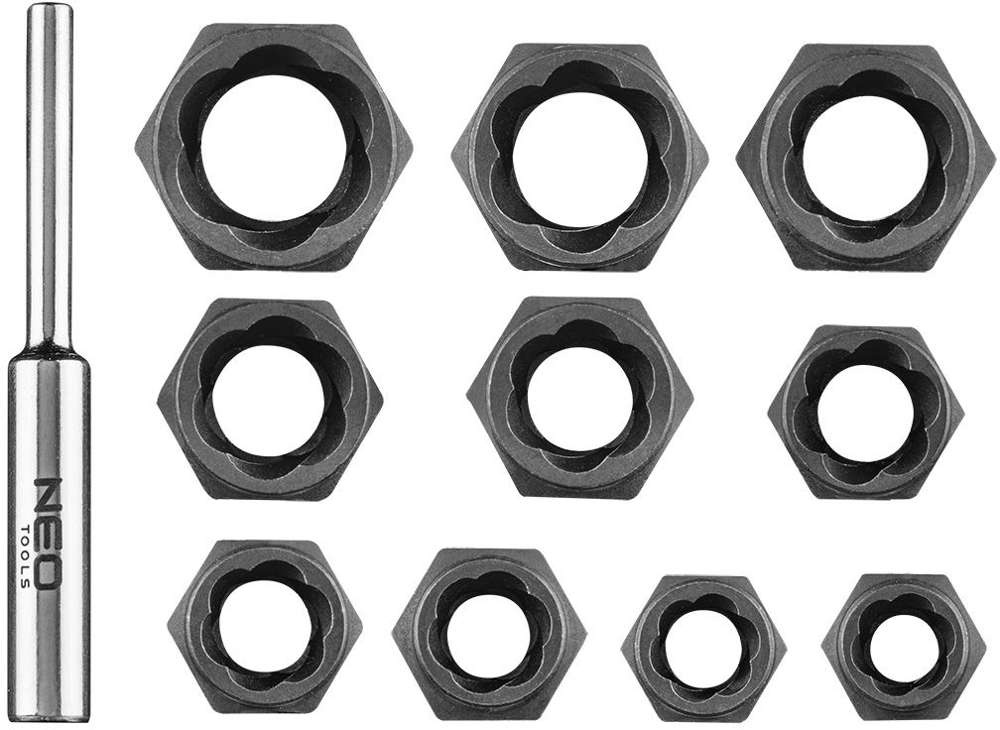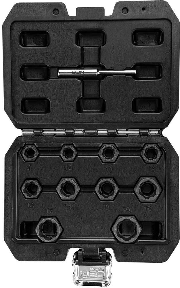 Nasadki do uszkodzonych nakrętek krótkie ze stali CrV o rozmiarze 9-19 mm 11 elementów Neo 11-922