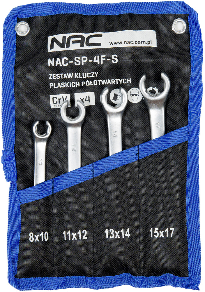 Zestaw kluczy płaskich półotwartych do przewodów hamulcowych 8-17 mm Nac 4 el. NAC-SP-4F-S