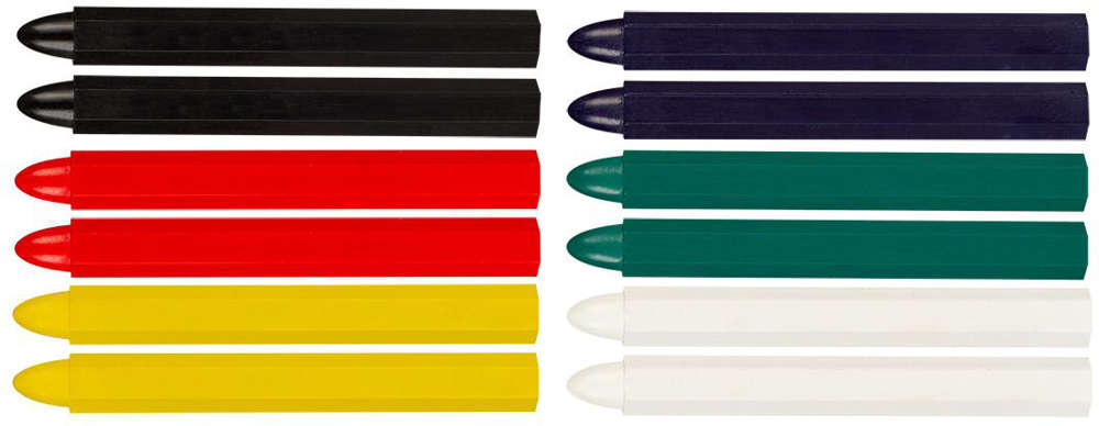Kreda techniczna, 12 szt., 13-961, NEO, w 6 różnych kolorach (czerwony, żółty, zielony, czarny, biały, granatowy). Zestaw tłustych kred technicznych służących do znakowania na różnych materiałach. Można nią wygodnie pisać na metalu, drewnie, kamieniu, betonie, szkle, gumie.