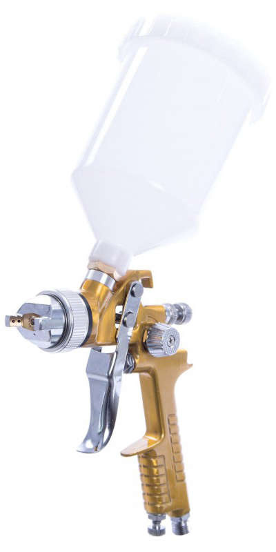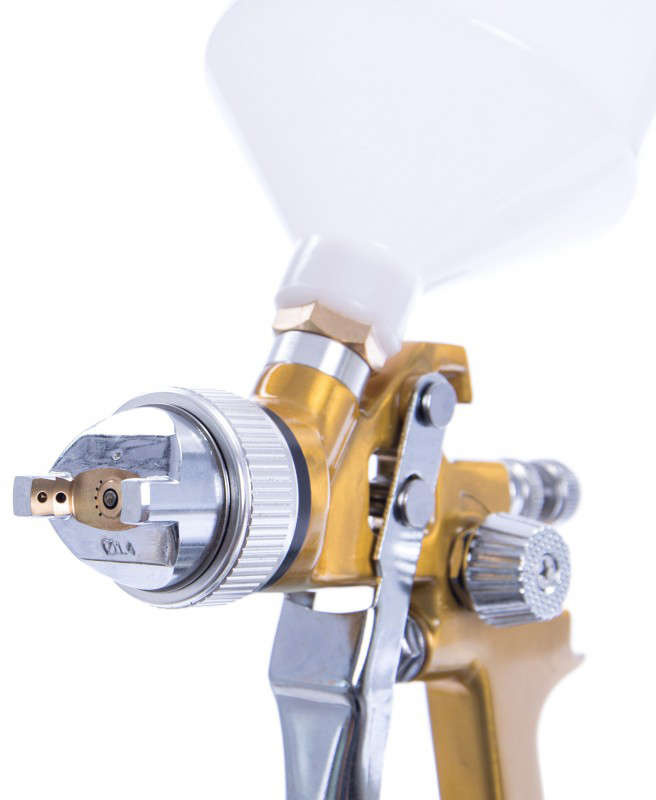 Niskociśnieniowy pistolet lakierniczy marki AUARITA do malowania lakierami akrylowymi, wodorozcieńczalnymi, perłowymi itd. Dysza typu HVLP (High Volume Low Pressure) wykonana ze stali nierdzewnej gwarantuje doskonałe rozpylenie farby, dzięki czemu położenie równomiernej powłoki nie stanowi problemu nawet dla amatora. Niskie ciśnienie oraz duży strumień powietrza bardzo dobrze rozbijają cząsteczki farby równocześnie nie rozpędzając ich zbytnio, dzięki czemu farba nie odbija się od malowanej powierzchni.