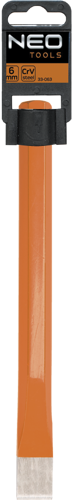 Przecinak NEO o długości 150 mm i sześciokątnym przekroju. Przeznaczony do wycinania otworów w ścianach, rozbijania i kruszenia twardych materiałów. Wykonany z wysokiej jakości stali chromowo-wanadowej, zapewniającej długą żywotność produktu. Zakończony płaskim ostrzem. Marka NEO spełnia oczekiwania profesjonalistów.