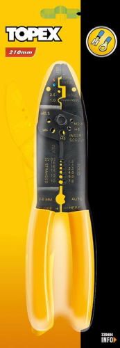 Szczypce do zaciskania końcówek TOPEX (nr ref. 32D404) o długości 210 mm i zakresie pracy od 1 do 7 mm2. Przeznaczony do zaciskania różnych końcówek przewodów. Uchwyt pokryty antypoślizgowym tworzywem zapewnia komfort podczas pracy. Marka TOPEX skierowana jest do majsterkowiczów.