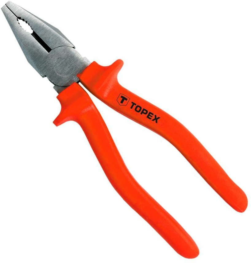 Szczypce uniwersalne 1000V TOPEX (nr ref. 32D512) o długości 200 mm. Przeznaczone do prac pod napięciem do 1000V. Wykonane z hartowanej stali, dodatkowo powierzchnie tnące hartowane indukcyjnie. Ergonomiczne uchwyty pokryte antypoślizgowym materiałem zapewniają wygodę i bezpieczeństwo podczas pracy. Produkt jest doskonale dopasowany do kształtu dłoni. Marka TOPEX skierowana jest do majsterkowiczów.