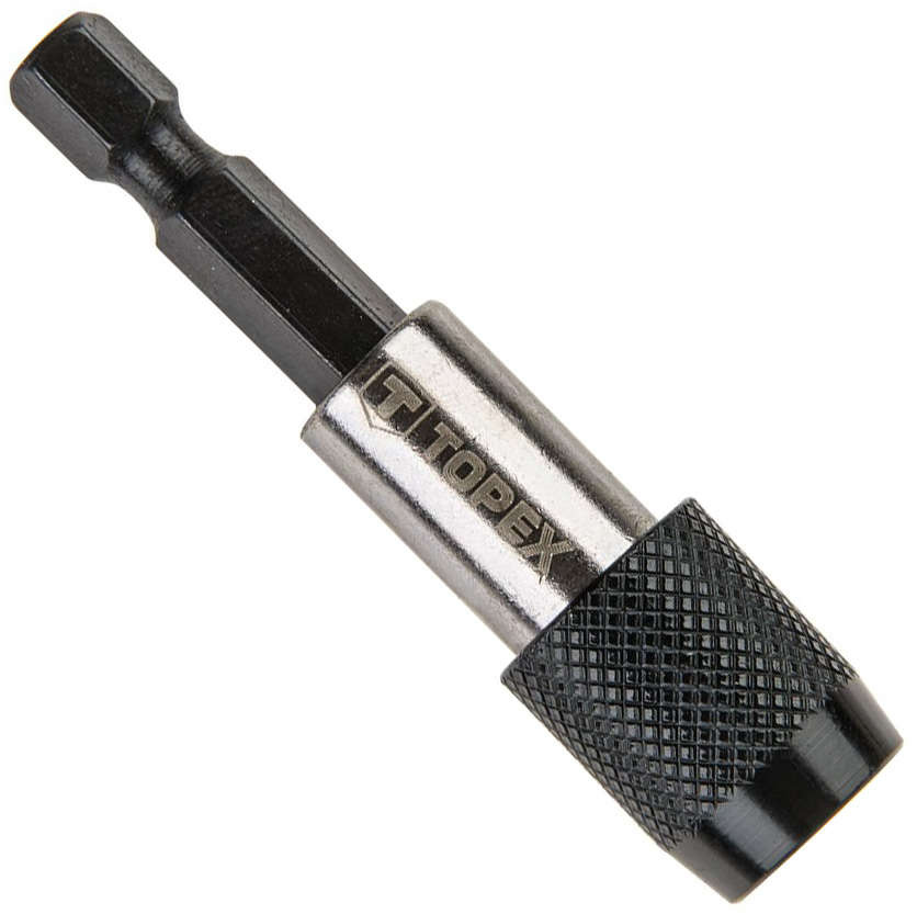 Uchwyt do końcówek TOPEX (nr ref. 39D337) o długości 60 mm przeznaczony do wkrętarek i wiertarko-wkrętarek z końcówką w rozmiarze 1/4”. Dzięki mocowaniu zatrzaskowemu wymiana bitów jest szybka i łatwa. Marka TOPEX skierowana jest do majsterkowiczów.