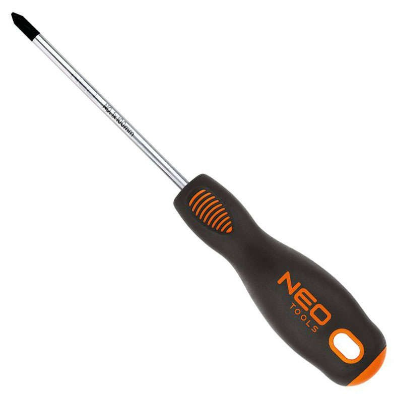 Wkrętak krzyżowy PZ NEO (nr ref. 04-031) o wymiarach PZ0 x 75 mm. Grot wkrętaka wykonany jest z wyjątkowo wytrzymałej stali S2. Końcówka robocza grota została poddana obróbce cieplnej, dzięki czemu uzyskano odpowiednią twardość i odporność na zgięcia 56 HRC. Wkrętak posiada magnetyczną końcówkę. Trójgraniasty kształt uchwytu z wyprofilowanym oparciem dla kciuka zmniejsza obciążenie dłoni podczas pracy i ułatwia uzyskanie optymalnego momentu obrotowego. Dwumateriałowy uchwyt zapobiega ślizganiu się w dłoni, odporny jest na działanie chemikaliów, olejów i smarów. Jakość narzędzia potwierdzona certyfikatem TÜV i 25-letnią gwarancją producenta. Marka NEO spełnia oczekiwania profesjonalistów.