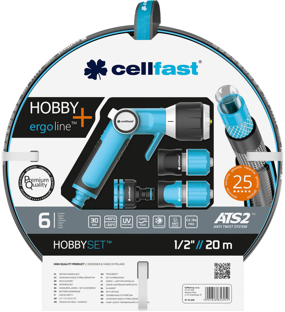 Wąż ogrodowy HOBBY + zraszacz pistoletowy renomowanej firmy Cellfast 16-209