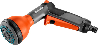 GARDENA Classic wielofunkcyjny pistolet zraszający oferuje trzy rodzaje strumienia: zraszający, perlisty i 9-punktowy. Wyposażony jest w innowacyjną technologię ochrony przed mrozem. Bezstopniowa regulacja przepływu umożliwia dozowanie wymaganej ilości wody. Dzięki funkcji blokady wyzwalacza impulsowego można wygodnie wykonywać dłuższe prace. Przepływ wody jest wtedy ciągły. Zraszacz jest wyposażony w miękki pierścień z tworzywa sztucznego, który chroni go przed uszkodzeniami. Posiada wbudowany filtr, który można zdjąć i wyczyścić.