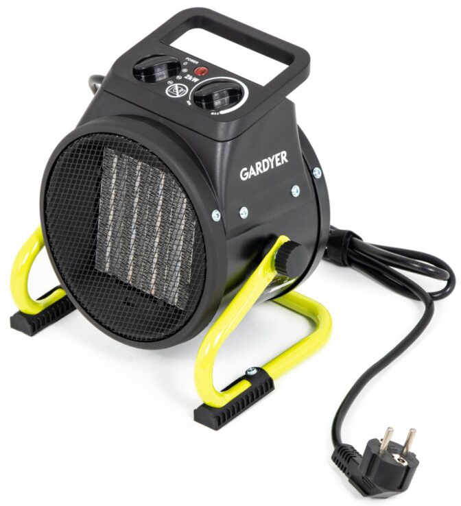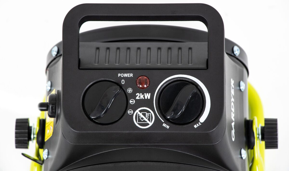 Nagrzewnica elektryczna Gardyer HE2000 ogrzewa powietrze i rozprowadza je po pomieszczeniu za pomocą umieszczonego w niej wentylatora. Urządzenie ma moc 2 kW. Użytkownik ma możliwość jej regulacji na 1000 oraz 2000 W. Przepływ powietrza w opisywanym modelu wynosi 197m3/h. Nagrzewnica elektryczna Gardyer HE2000 jest w stanie ogrzać pomieszczenia o powierzchni do 20 m2. Dzięki temu sprzęt ten jest niedrogim i bardzo funkcjonalnym sposobem na ogrzanie pomieszczeń na działkach, w domkach letniskowych, garaży oraz innych miejsc, gdzie nie ma dostępu do centralnego ogrzewania. Dużą zaletą takiego rozwiązania jest całkowity brak emisji szkodliwych gazów, w związku z czym jest to bardzo wygodny i korzystny sposób ogrzewania pomieszczeń zamkniętych, w których przebywają ludzie.