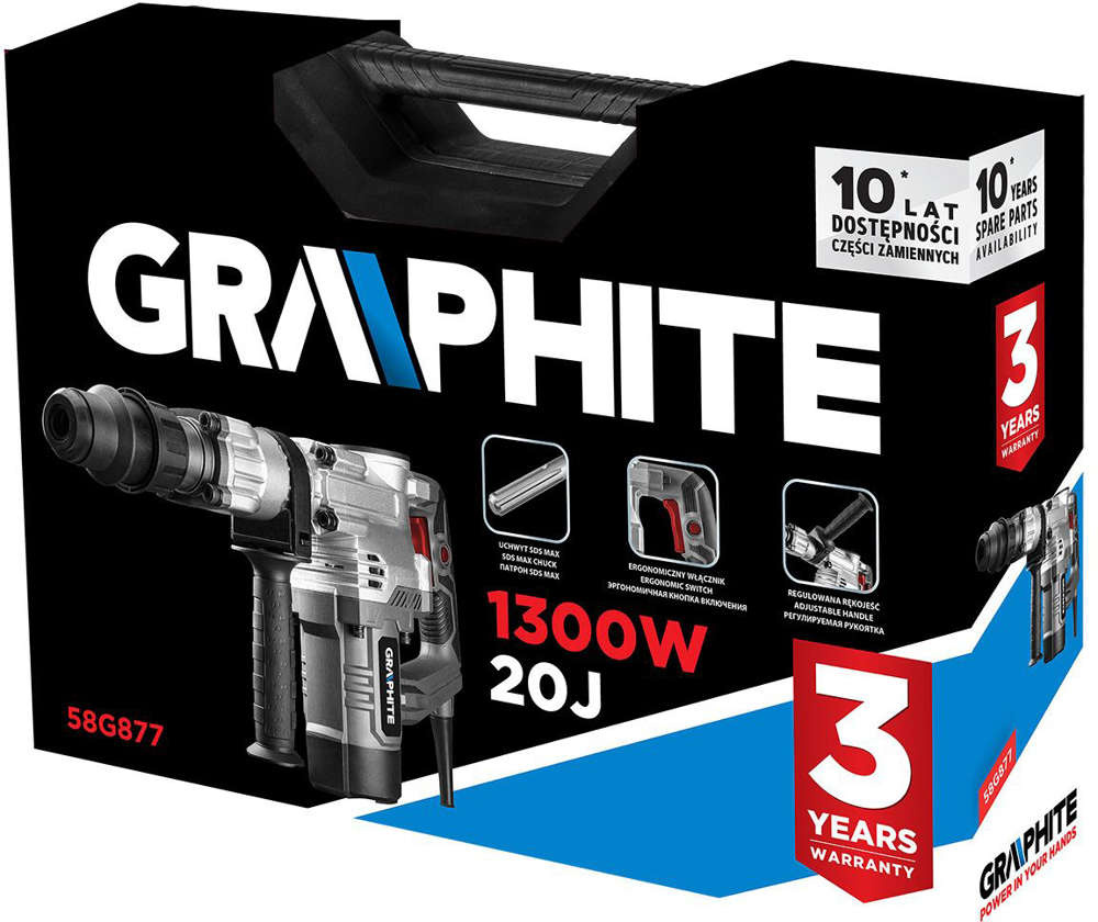 Młot wyburzeniowy z uchwytem SDS MAX o mocy 1300W z walizką Graphite 58G877