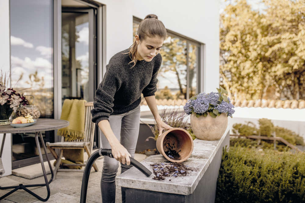 Przy poborze zaledwie 1000 W, urządzenie WD 3 V-15/4/20 jest mocne i energooszczędne. Zarówno odkurzacz, wąż ssący, jak również ssawka podłogowa z wymiennymi listwami są do siebie idealnie dopasowane - dla uzyskania najlepszych rezultatów czyszczenia na sucho, mokro, jak również usuwania drobnych i dużych zanieczyszczeń. Odkurzacz do pracy na mokro i sucho imponuje kompaktowym designem oraz solidnym zbiornikiem z tworzywa sztucznego o pojemności 15 litrów, przewodem zasilającym o długości 4 m, 2-metrowym wężem ssącym oraz fizelinową torebką filtracyjną. Dzięki jednoczęściowemu filtrowi kartridżowemu, możliwe jest odkurzanie na mokro i na sucho bez konieczności wymiany filtra. Funkcja wydmuchu jest przydatna do czyszczenia trudno dostępnych miejsc. Wąż ssący można zawiesić na głowicy urządzenia, oszczędzając miejsce. Przewód zasilający może być przechowywany na haku, a rury i ssawka podłogowa na listwie odbojowej. System zamykania „Pull & Push” umożliwia łatwe otwieranie i zamykanie zbiornika. Kolanko można zdemontować i podłączyć akcesorium bezpośrednio do węża ssącego. Pozostałe sprytne rozwiązania: Narzędzia i małe części takie jak śruby można odłożyć na głowicy urządzenia. Uchwyt do przenoszenia ma ergonomiczny design.
