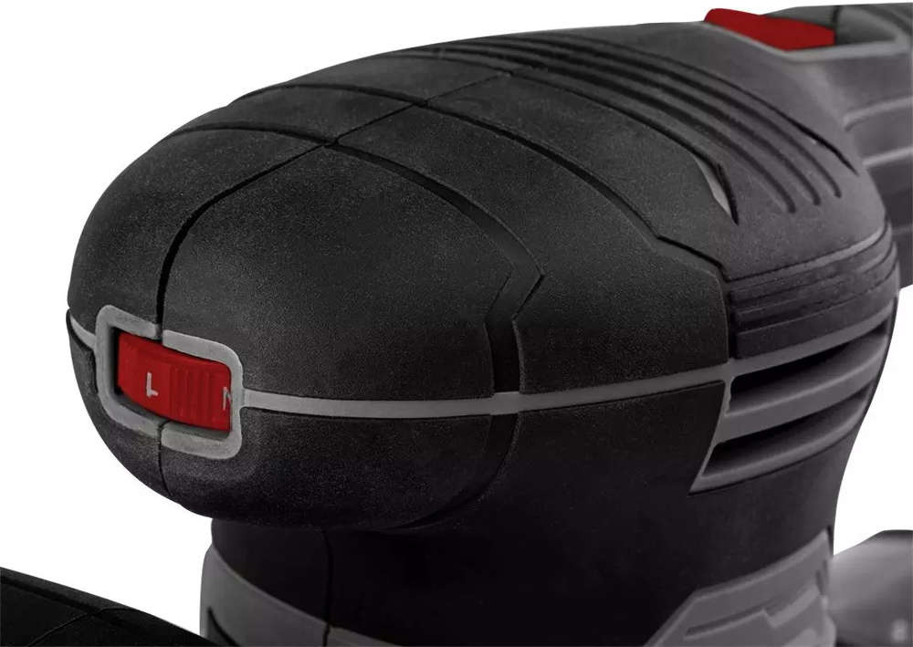 Posiada możliwość ustawienia prędkości w programach od 1 do 5 i maksymalnym. Amplituda oscylacji wynosi 1 mm. System odsysania pyłu pozwala na zachowanie porządku w miejscu pracy. W zestawie szlifierka oferowana jest ze stopą roboczą 125 mm, stopą roboczą 150 mm, 6 sztukami papieru ściernego, kluczem sześciokątnym, pojemnikiem sztywnym z filtrem na pył oraz praktyczną walizką.