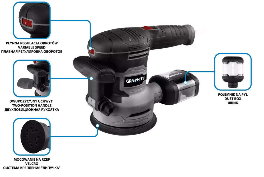 - Szlifierka mimośrodowa profesjonalna i wytrzymała renomowanej firmy GRAPHITE