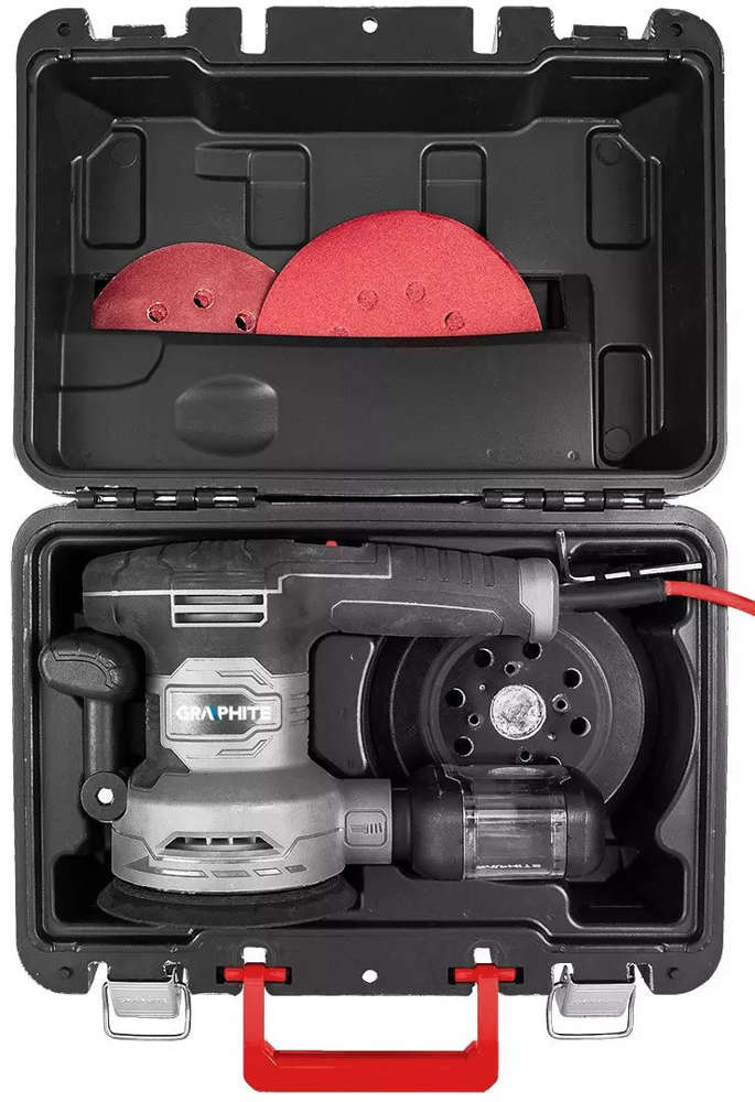 Szlifierka mimośrodowa sieciowa 450 W Graphite 125/150 mm + wymienna stopa + walizka